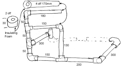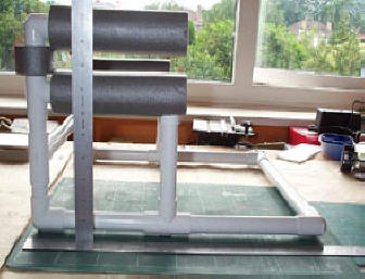 model wing slides into place leading edge first. The height of the top bar and foam can be modified to accommodate
