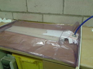 Place the whole assembly into your vac-bag. Due to the porous nature of