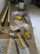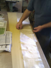 lay out the glass cloth and smooth down evenly. To apply the epoxy there