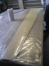 Open up and lay the taped together veneer skins on the table. Onto these