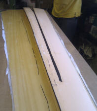 leading edge, also wet out the spar rebate in the wing core. Cut the